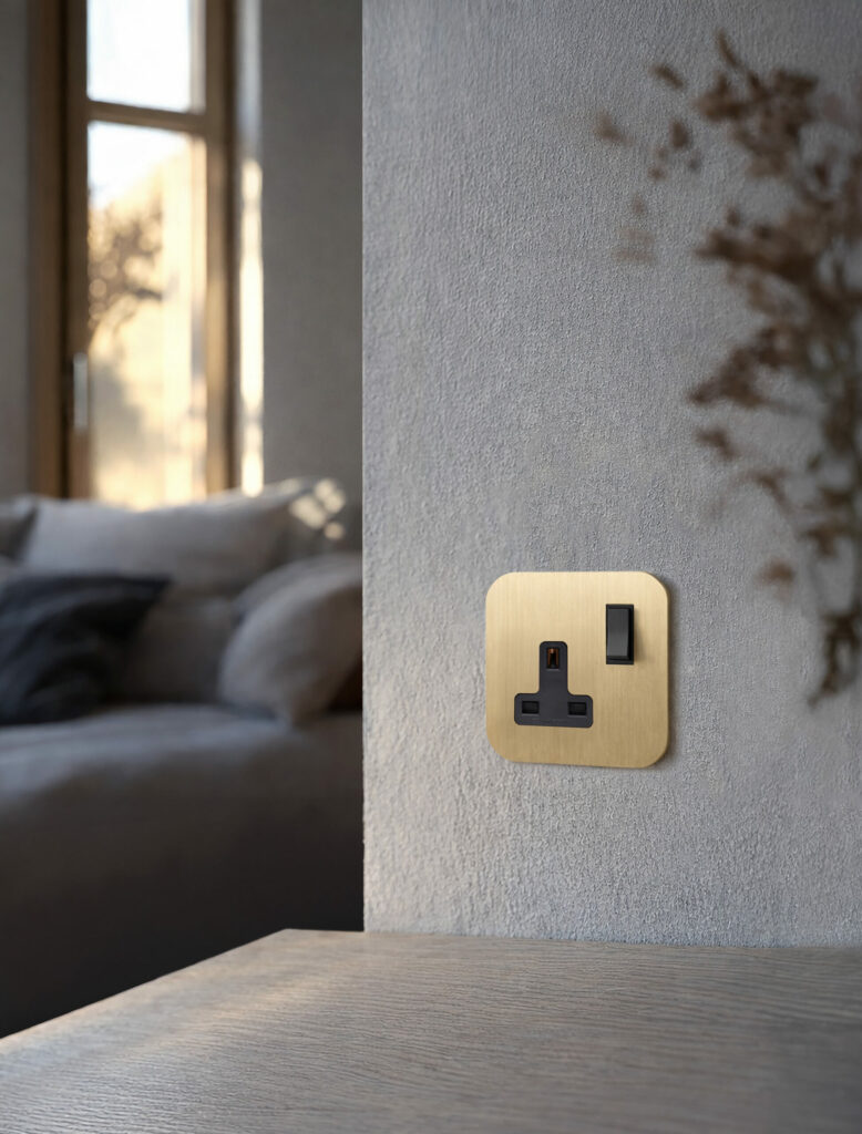 Meljac is proud to unveil a screwless socket for the British market – a sleek, high-end product that is fully compatible with British technical requirements. This innovation means that Meljac can now include British sockets in its Solaris collection, developed in collaboration with the famous designer Marc Newson. Solaris is characterised by distinctive rounded brass plates with no visible screws.